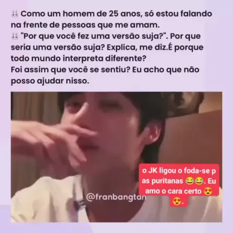 Habla mesmo menino JK. e deixem me coelho terrorista em paz kkkkk. #jk #jungkook #bangtan #armyofbts