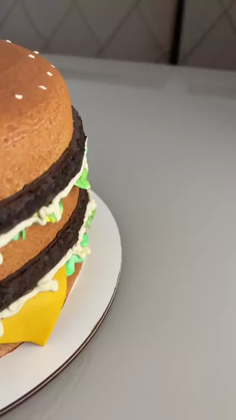 Bolo HambĂșrguer!đŸ”đŸ«¶đŸŒ #bolohamburguer #burgercake #mcdonaldscake #bolobigmac #bolomcdonalds