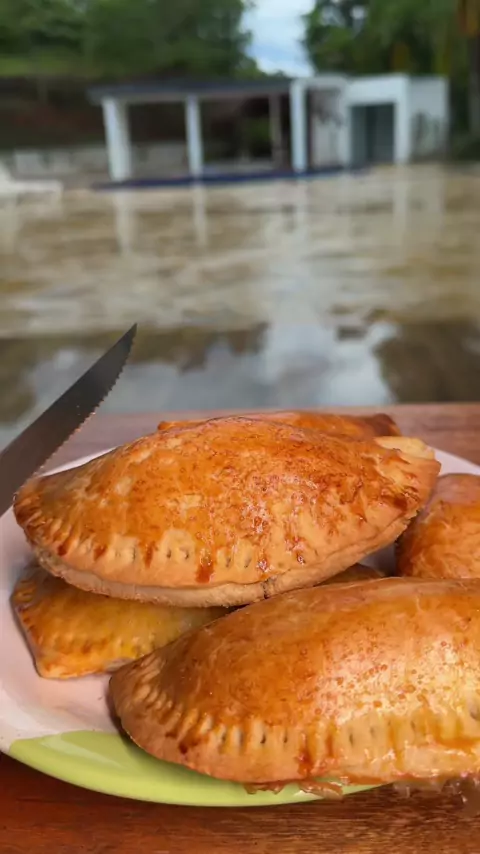 Pastel assado E SAUDÁVEL NÉ? Esse trem fica extraordinário 🥰 Massa: 2 e 1/2 xic trigo 1 cx creme de leite 2 c.s manteiga Sal Recheio: 400g frango desfiado 1/2 lata de milho 1/2 molho de tomate Tempero/ sal #receita #camilemota #viral #premiokwai2025