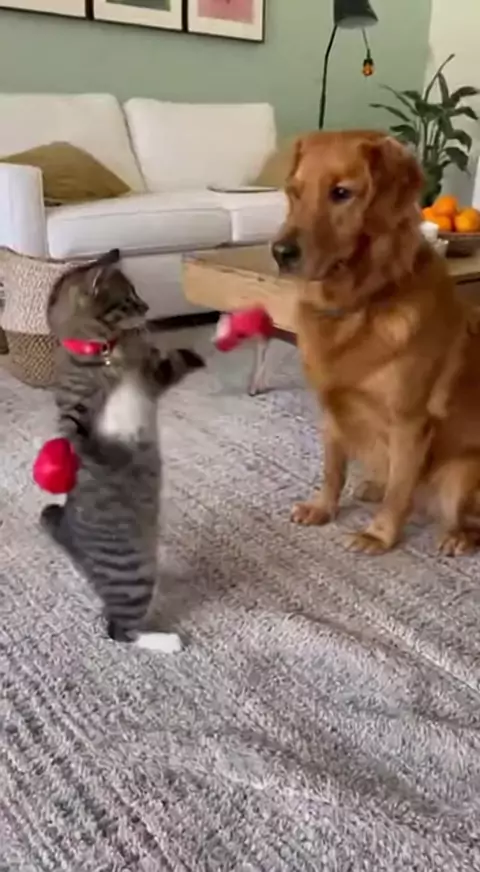 gatinho lutando boxe