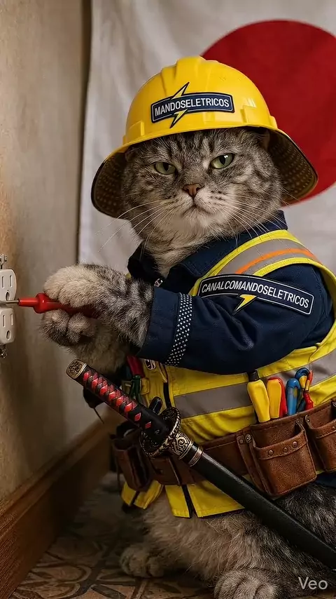 gato eletricista samurai japonês, Japan electricians cat #eletricista #japao #japonese #cat #gatinho
