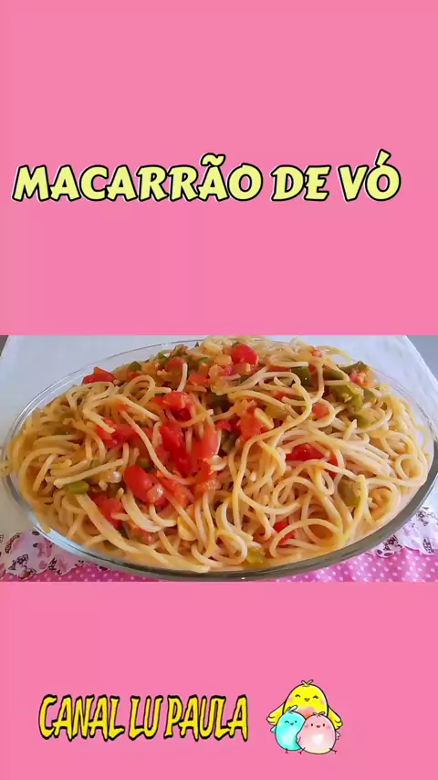 MACARRÃO DE VÓ Ingredientes 3 dentes de alho 1 cebola picada 1 tomate picada 1 pimentão picado 1 xícara de água 1 colher de sopa rasa de colorau 1 pitada de sal 1 pacote de macarrão #macarrão #macarraodevó #macarronada
