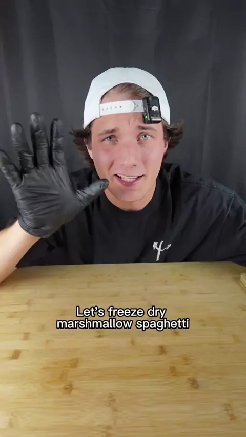 Freeze drying marshmallows spaghetti 🍝 what should I freeze dry next? #freezedriedcandy #crunch #candeeze