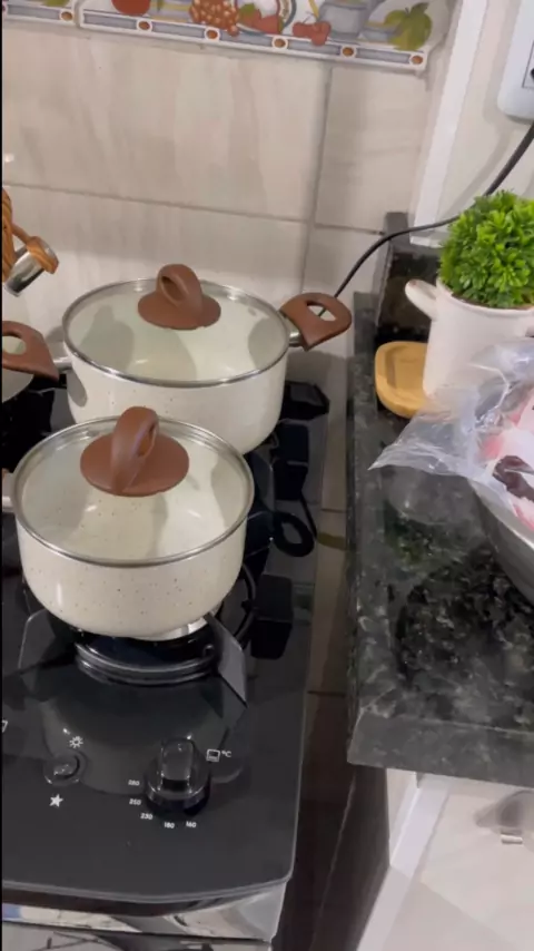 Conjunto de Panelas Brinox 6 Peças Ceramic Life Smart Plus com Revestimento Antiaderente Cerâmico e Tampa de Vidro com Saída de Vapor 2.5 mm - Vanilla #panelas #panela #brinox #revil #gostei