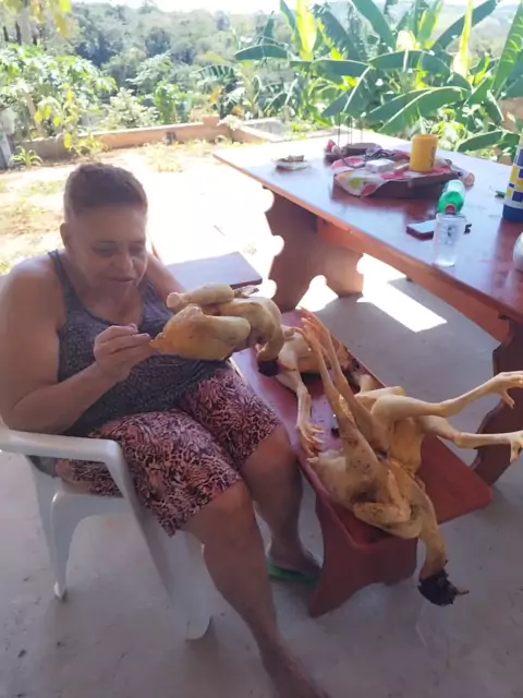 arrumando os frangos da festa ma minha mãe de 70 anos #frango #roça #Mae #festa #anivessario