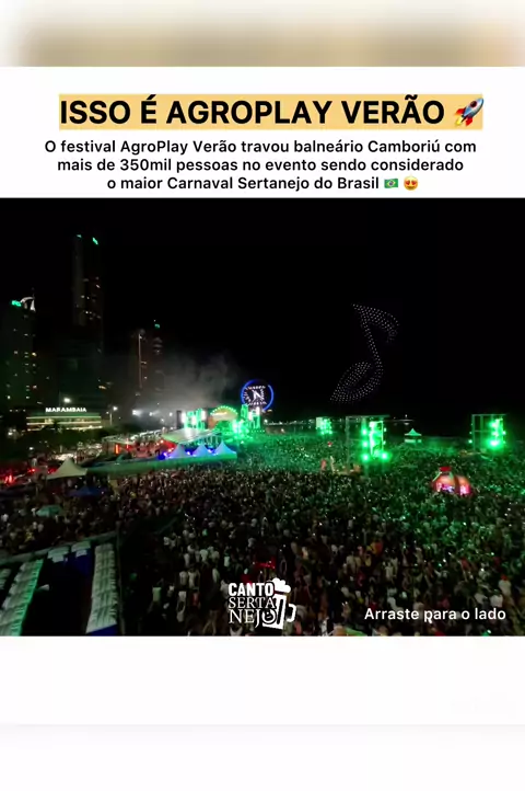 O @agroplayverao Festival entrou para a história. 🔥 Com mais de 350 mil pessoas, Balneário Camboriú ficou pequeno para o evento que balançou a cidade e se tornou o maior Carnaval Sertanejo do Brasil 🇧🇷 👏😍 @agroplaymusic . #cantosertanejo #sertanejo #agroplay #anacastela #zefelipe