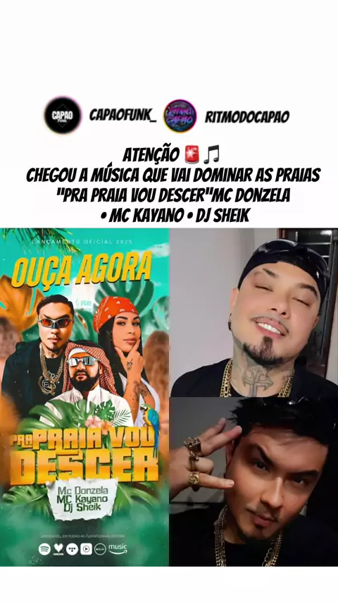 LANÇAMENTO PESADO 🌴🔥 MC Donzela, MC Kayano e DJ Sheik chegaram com tudo em “Pra Praia Vou Descer” Dá o play e sente a vibe! 🎧💥