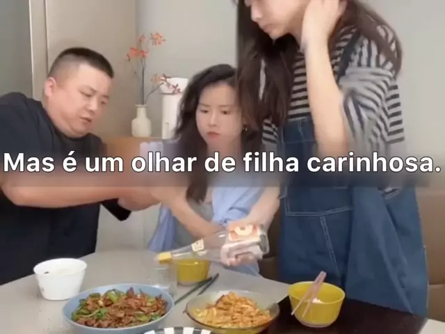 A família de três pessoas estava comendo, e suas mãos tremiam enquanto o pai pegava a comida. A esposa agarrou-o rapidamente, enquanto a filha pegou o vinho e encheu-o com seu pai, e depois o enviou afetuosamente para a mão de seu pai. a mãe virou os olhos e olhou para o pai e a filha de grandeza. Meu pai pegou pauzinhos e moveu os ossos e sentiu que o vinho era o remédio para apertar as mãos, e sua esposa estava tão irritada que ele havia perdido o apetite.