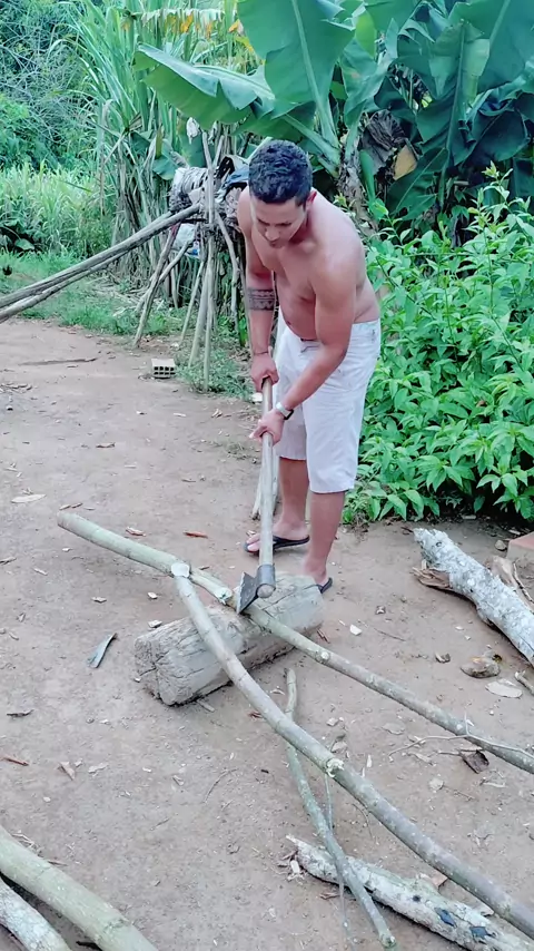 cortando lenha no Machado