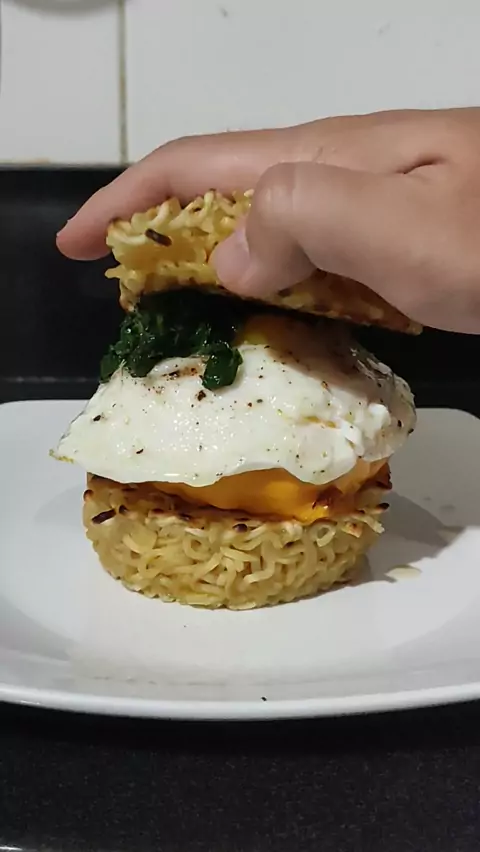 Bora fazer ramen burger? #receita #comida #comidaasiatica #hamburguer #ramen