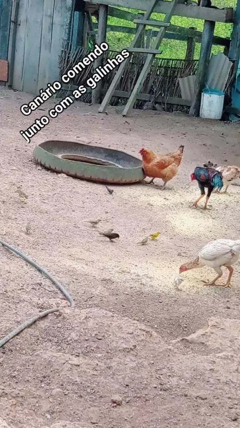 Canário comendo junto com as galinhas #citio #roça #vidanaroca🏜
