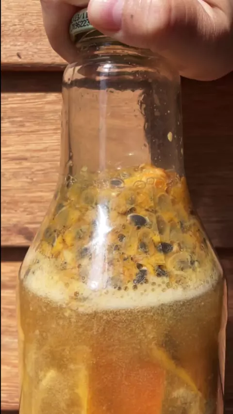 SODA DE MANGA E MARACUJÁ ✨ INGREDIENTES Casca de 1 manga Polpa de 1 maracujá 3 rodelas de gengibre 3 colheres de sopa de açúcar mascavo 1 litro de água filtrada Misture todos os ingredientes em uma garrafa higienizada e deixe fermentar fora da geladeira por 3 dias, sempre abrindo e mexendo pra evitar que alcoolize e crie pontos de mofo. #fenasmaluca #ARTVIRTUAL #BonecaIA #flamengoxsãopaulo