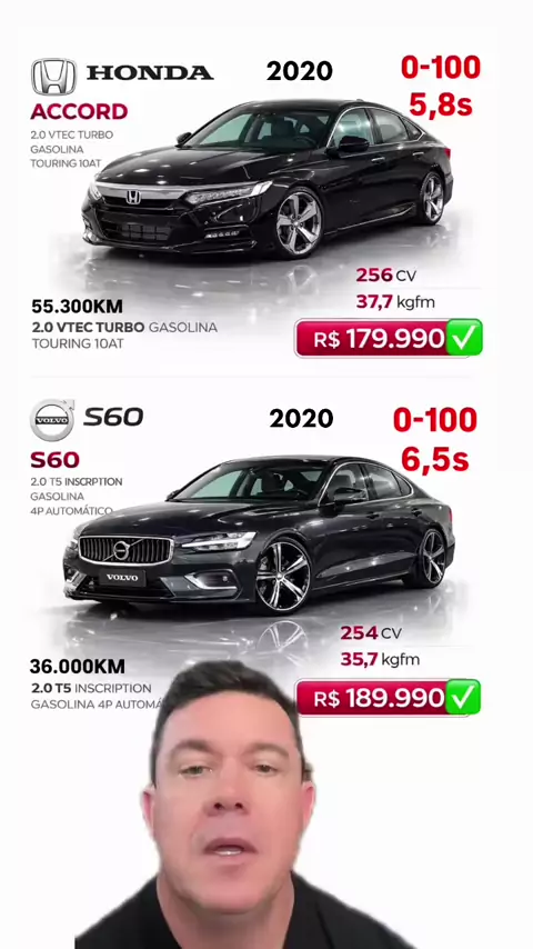 Dois sedãs excelentes na faixa dos 180/190 mil. Honda Accord ou Volvo S60 T5?#honda#accord#volvo#s60#sedan