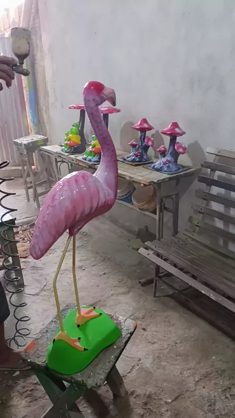 mister Manel aplicando o brilho no flamingo 🦩🙏 #escultura #jardim #viraliza #artesanatos é muito fácil 😂🙏🙏