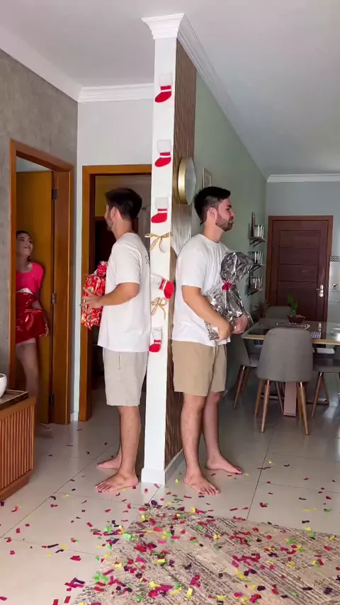 Por aqui já trocamos os presentes 😍 e sem querer os maridos juntos 😰 kkkkk Feliz natal pra todos os nossos seguidores ❤️ #twins #gemeos #comedia #humor #viraliza #casal #gêmeos