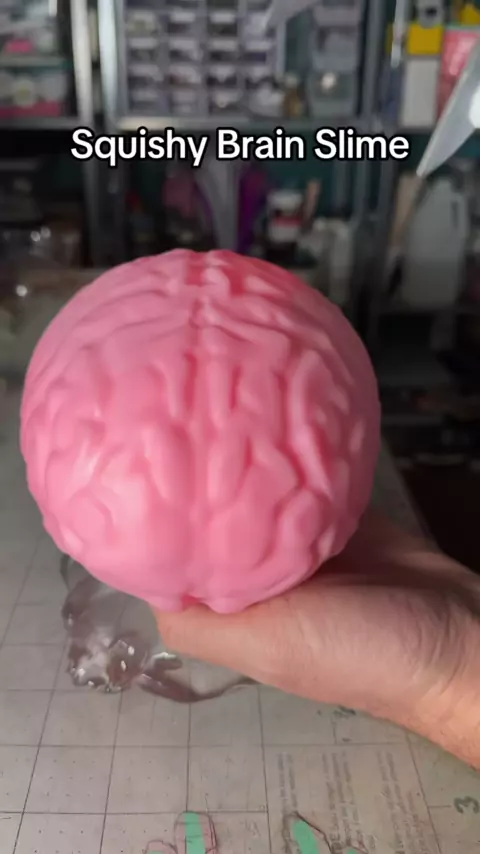 Misturando coisas estranhas em lodo: A espuma de dentro de um brinquedo cerebral squishy e espuma pluffle. # nickpainting # slime # squishy # toy