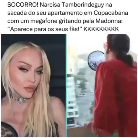 A Narcisa gritando pra Madonna na sacada do apartamento dela em Copacabana no Rio 😂👏. (📹 Reprodução: SBT)