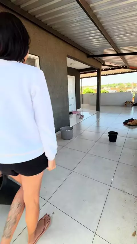Lavando o quintal depois da chuva de poeira que teve aqui na cidade, aí também sujou tudo?