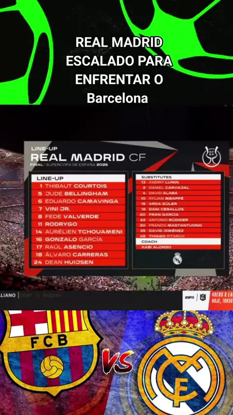 REAL MADRID ESCALADO PARA ENFRENTAR O Barcelona #copadorei #BarcelonaxRealMadrid #futebolviral #esporteviral #realmadrid