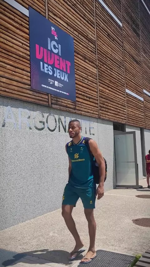 "Aqui vivem os Jogos" ✨ No Dia Olímpico, a placa na entrada no ginásio de treinos da seleção masculina na França não deixa esquecer: esta é a terra das Olimpíadas de 2024. Pela Liga das Nações, o time de Renan Dal Zotto enfrenta a Eslovênia amanhã, sábado, às 11h30 (de Brasília). 💚💛 #voleibrasil #volei #BancoDoBrasil #tamojuntonessegame #voleiNoKwai