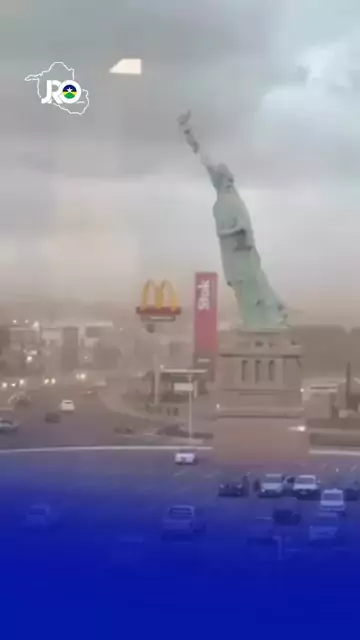 Vídeo registrou o momento em estátua da Havan é derrubado por vendaval em Guaiba-RS
