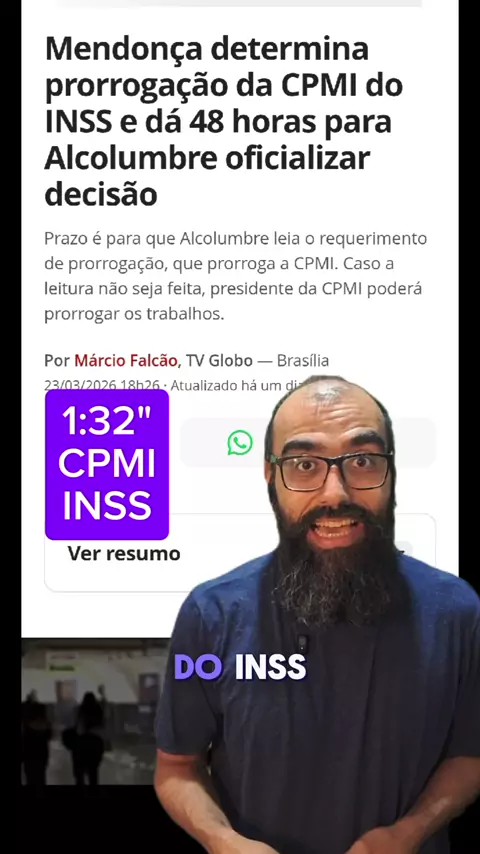 A mamata vai ser investigada! 🚨 O ministro André Mendonça deu 48 horas para Davi Alcolumbre prorrogar a CPMI do INSS, causando desespero no governo Lula e na esquerda. O esquema que tenta abafar as investigações sobre o Lulinha tomou um balde de água fria. Se correr o bicho pega, se ficar o bicho come! 🔥 #CPMIdoINSS #Política #STF #GovernoLula #Alcolumbre Referência: https://g1.globo.com/politica/noticia/2026/03/23/mendonca-decisao-cpmi-inss.ghtml