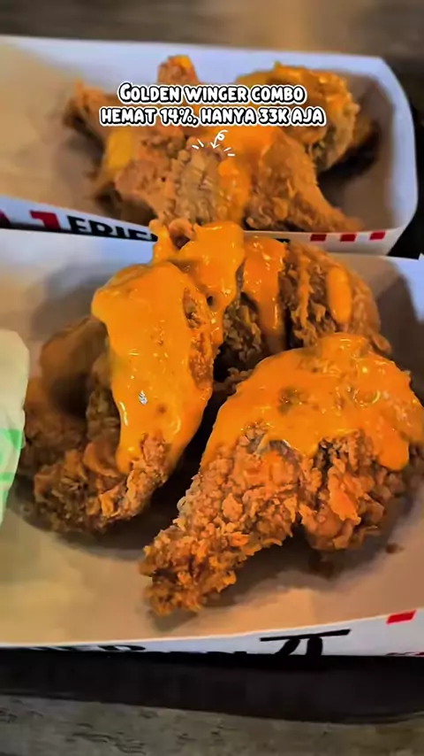 #promomakanharian di #kfcindonesia ada Paket lengkap Golden Winger cuma 35k, kamu hemat 11%, loh. Dapet winggete+drummete+rice organic+coke zero reg. Buruan klaim sekarang, ya! ##kfc##kfcpromo##promokfc