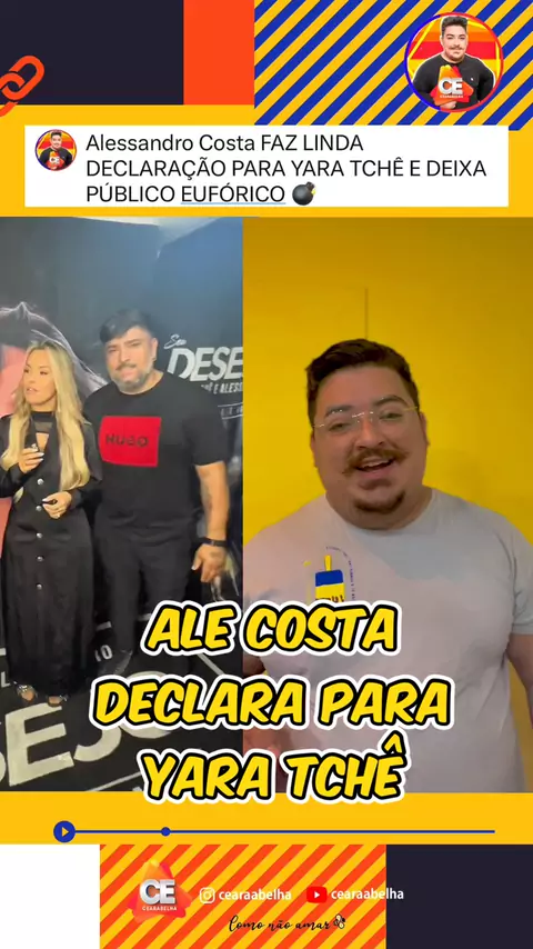 ✨ Alessandro Costa surpreendeu a web ao fazer uma declaração especial para sua amiga e ex-esposa Yara Tchê 💌. Mesmo separados há 2 anos, os dois seguem juntos à frente da banda Seu Desejo mostrando muita sintonia nos palcos 🎤🔥. Yara já assumiu um novo namoro com um policial 👮‍♂️, enquanto Alessandro ainda não apareceu publicamente com ninguém ❤️‍🩹. E aí, será que essa amizade forte é o segredo do sucesso deles no palco? 🎶 #AlessandroCosta #YaraTchê #SeuDesejo #Forró