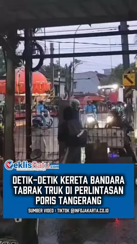 Kereta Bandara Soekarno-Hatta atau Commuter Line Basoetta mengalami anjlok setelah tertemper truk di perlintasan sebidang JPL 21 lintas Rawa Buaya–Batuceper, Poris, Tangerang, Jumat (20 Februari 2026) sekitar pukul 06.05 WIB. Sumber video : tiktok @infojakarta.co.id #ceklissatu #basoetta #ptkai #kecelakaankeretaporis #tangerang
