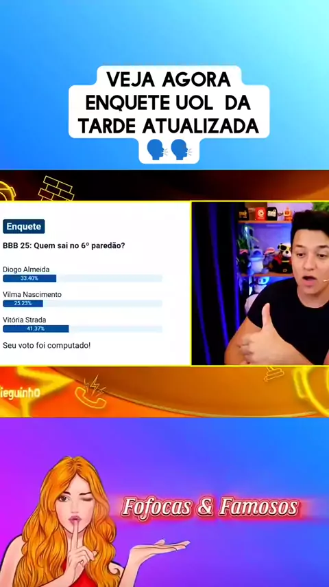 veja agora ENQUETE UOL da tarde atualizada #BBB25 #Paredão #Sócenasboas #BomPraKWAI #aline