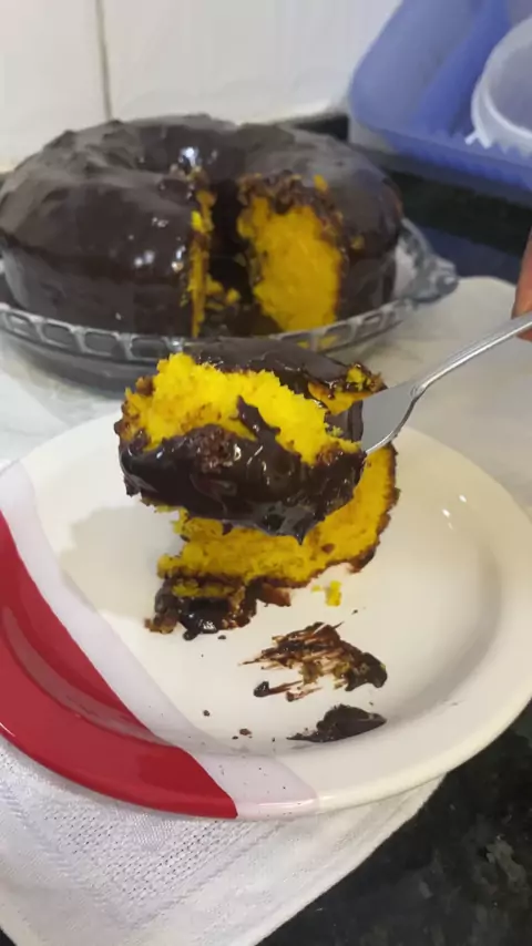 Bolo de cenoura 🥕 com calda de chocolate 🍫 #festaboaprakwai #SouMulher #bolodecenoura #girassol #girasol