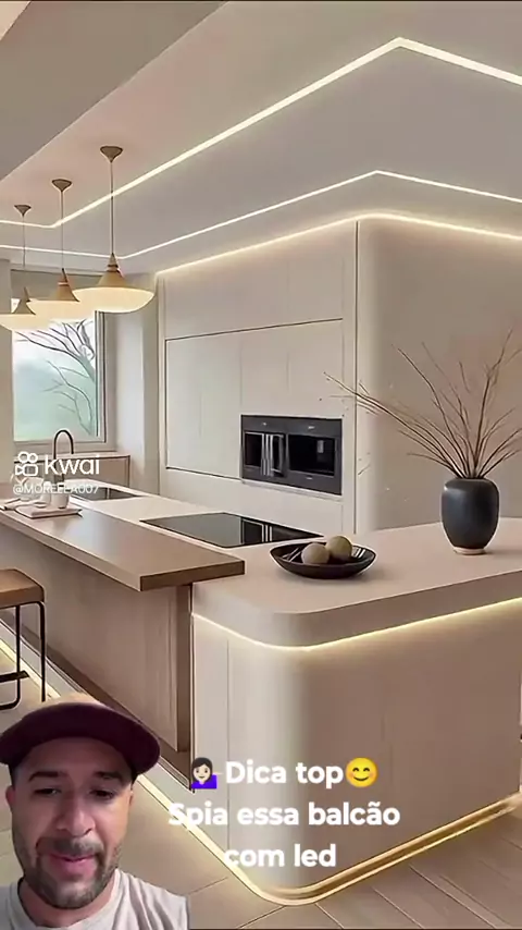 💁🏻‍♀️Dica top🤪 Cozinha americana Spia essa cor de pedra e o armário lindo com led
