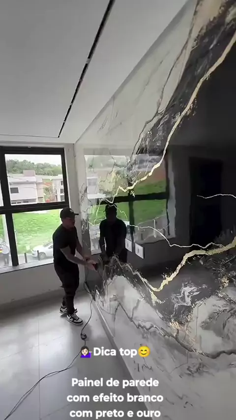 💁🏻‍♀️Dica top😊 Painel de parede com efeito branco com preto e ouro