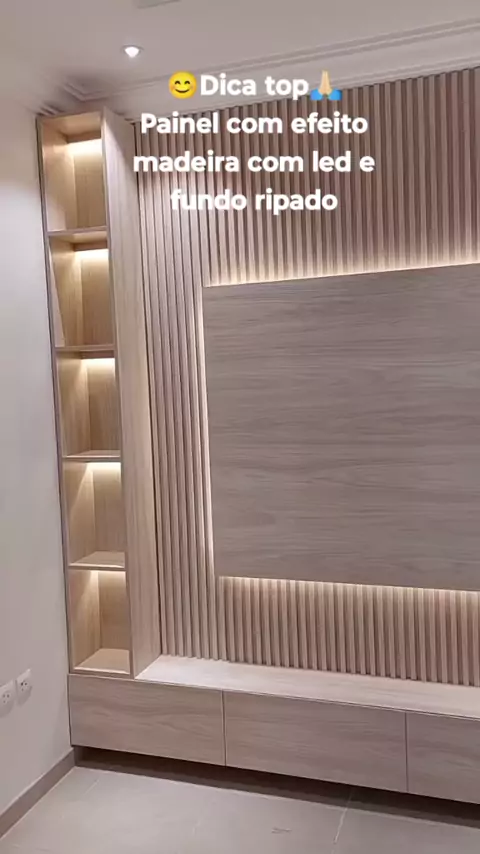 😊Dica top🙏🏻 Painel com efeito madeira com led e fundo ripado