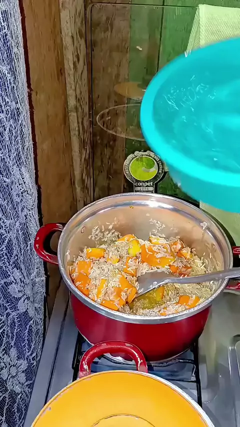 arroz com abóbora e carne moída frita foi a nossa janta