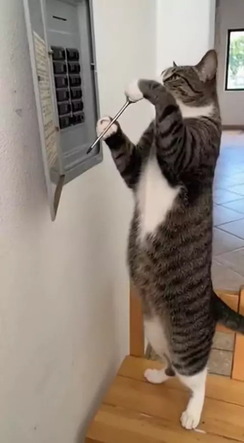 O gato tentou consertar o disjuntor e virou uma bola de pelos estática! 🔌🙀 #curiosidade #petlovers #risos #fofo #ia
