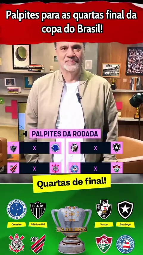 Palpites para as quartas de final da copa do Brasil #copadobrasil #esporteviral #atleticomgxcruzeiro #vascoxbotafogo #athleticoprxcorinthians