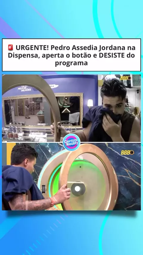 Confira o relato de Jordana: “Eu tava procurando o baby liss, que tem o grosso, médio e fino. Achei que o maior tava com a Aline lá em cima. O Pedro falou: ‘Na despensa deve ter mais’, e eu achava que eram só dois. Eu falei: ‘Vou ver’. Todo solícito, ele abriu e eu fui procurar. Eu não vou ficar excluindo ele, enfim... Ele pegou e entrou comigo na despensa, me pegou pelo pescoço e tentou me beijar. Eu falei: ‘Cê tá louco?’ e ele falou: ‘Tô fazendo o que tô com vontade’.”