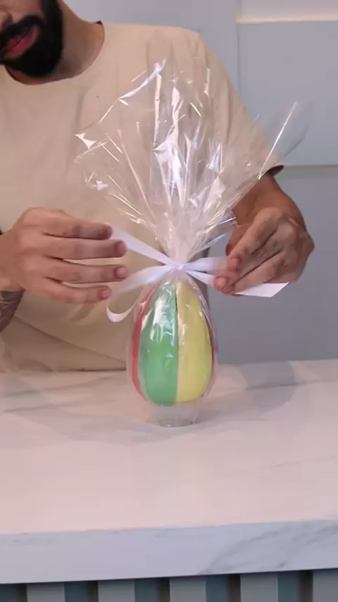 Ovo de Páscoa de fatia 😆 Será que vai dominar essa Páscoa? 🍫 Mas a pergunta é… realmente vale a pena? Testei em três sabores: morango, maracujá e pistache. Agora quero saber, você vai fazer?