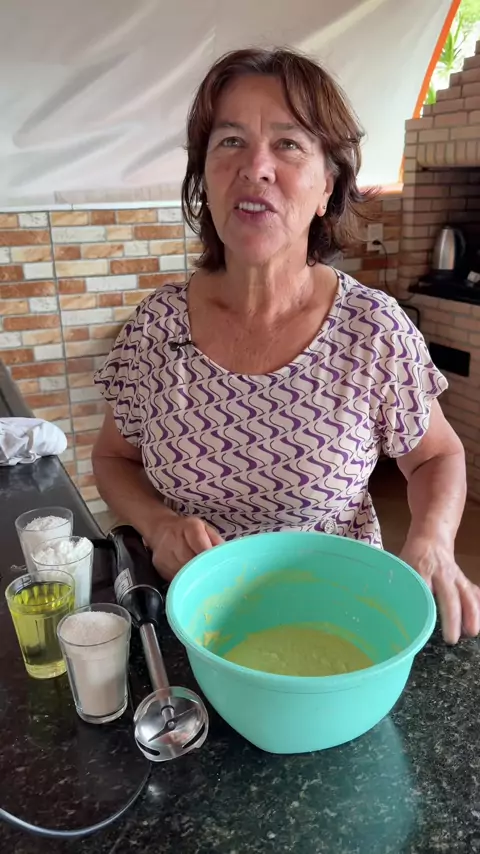 1 copo e meio de fubá com 1 copo de leite hidratado por 10 minutos 1 copo de óleo 1 copo de açúcar 3 ovos 1 copo e meio de amido de milho 1 copo de coco ralado 1 colher de fermento em pó #Chacaracristal #receita #bolofubacomamido
