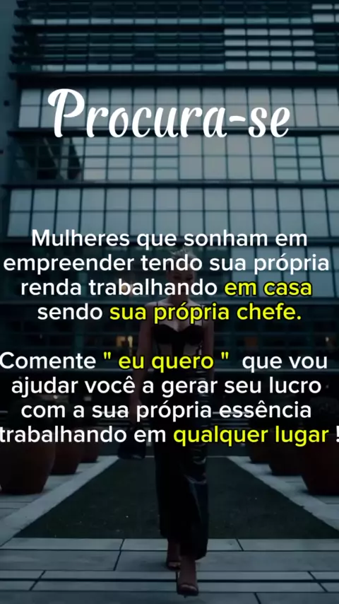 Procurando mulheres determinadas que sonham em empreender e conquistar sua independência financeira trabalhando de casa! 💪💼🌟 Se você quer transformar sua vida e alcançar uma renda extra, esse é o seu momento! 💖👩‍💻 #EmpreendedorismoFeminino #RendaExtra #TrabalheDeCasa #SonheAlto" Procurando mulheres determinadas que sonham em empreender e conquistar sua independência financeira trabalhando de casa! Se você quer transformar sua vida e alcançar uma renda extra, essa é a hora. #voceécapaz
