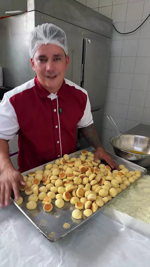 🧀 NHOQUE MINEIRO ASSADO 📝 Ingredientes 500 g de queijo fresco (quebrado ou esfarelado) 5 ovos 300 g de açúcar 600 g de farinha de trigo 50 g de fermento químico em pó 👩‍🍳 Modo de Preparo Em uma tigela grande, coloque o queijo fresco quebrado. Adicione o açúcar e misture bem até começar a formar uma massa úmida. Acrescente os ovos, um a um, misturando até obter uma massa homogênea. Incorpore a farinha de trigo aos poucos, mexendo até dar ponto. Por último, adicione o fermento quími