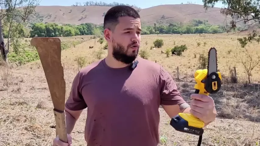 Uma Mini Motoserra que corta TUDO por R$200?🤨 #ferramentas #teste #review #sitio #madeira