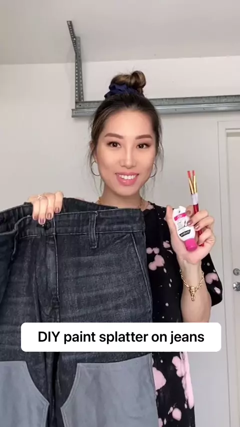 DIY paint splatter on my husband’s jeans. Save $$$ and have fun. #fashion #DIY #beU #jeans #designerfashion