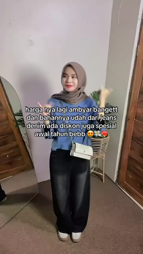 Membalas @tidak ada nama cekkdinlive aku yu beb, loose jeans ini bahannya dari jeans streach ya beb, bahannya melar elastis halus dan lembut 😍 #loosejeans #loosepants #baggyloose #jeanshighwaist #promomenjelangramadhan