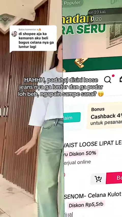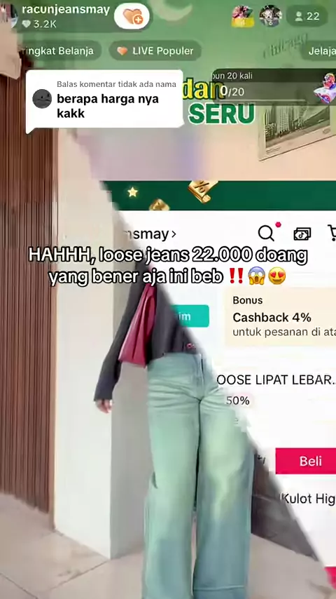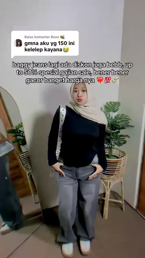 harga promo baggy jeans cuma di live beb kuh 😍 #baggyjeans #baggyloose #baggyoversized #jeanshighwaist #gajiansale
