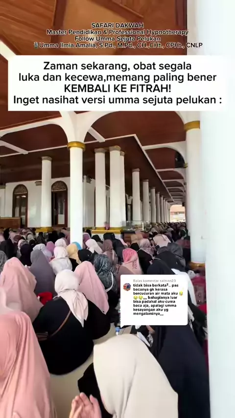 Membalas @Shalsabil N.S✨ ADA YANG HADIR PERMATAKU, BINTANG KEJORAKU, KASIHKU, MINYAK TELONKU ??!!! ALLAHUAKBAR TASIK MERINDINGG MASJID SAMPAI MELEBER KELUAR ALLAH TURUNKAN RAHMAT INSYAALLAH!!! 🥺😭❤️ . 🎙️Umma Ilmia Amalia, S.Pd., M.Pd., CH.,CHt., CPHt., CNLP (UMMA SEJUTA PELUKAN) Master Pendidikan & Professional Hypnotherapist Spesialist Counseling Parenting & AUD Certified Professional Hypnotherapist Certified Neuro-Linguistic Programming Motivator & Influencer Muslimah Founder Gerakan Ah...