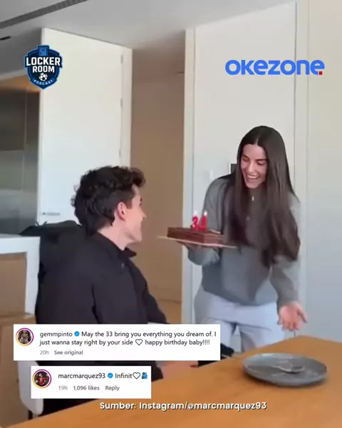 Okezoners, Marc Marquez baru saja merayakan hari ulang tahunnya yang ke-33 pada Selasa, 17 Februari 2026. Di hari spesialnya itu, Marquez dapat kejutan dan pesan menyentuh dari sang kekasih, Gemma Pinto. Gemma Pinto memberi kue coklat yang disertai lilin berangka 33 diberikannya di hari spesial Marquez tersebut. Tak hanya itu, Gemma juga tuliskan pesan menyentuh lewat unggahannya di . Dia berharap bisa selamanya berada di sisi juara dunia 7 kali MotoGP tersebut. Di usia baru, Marque...