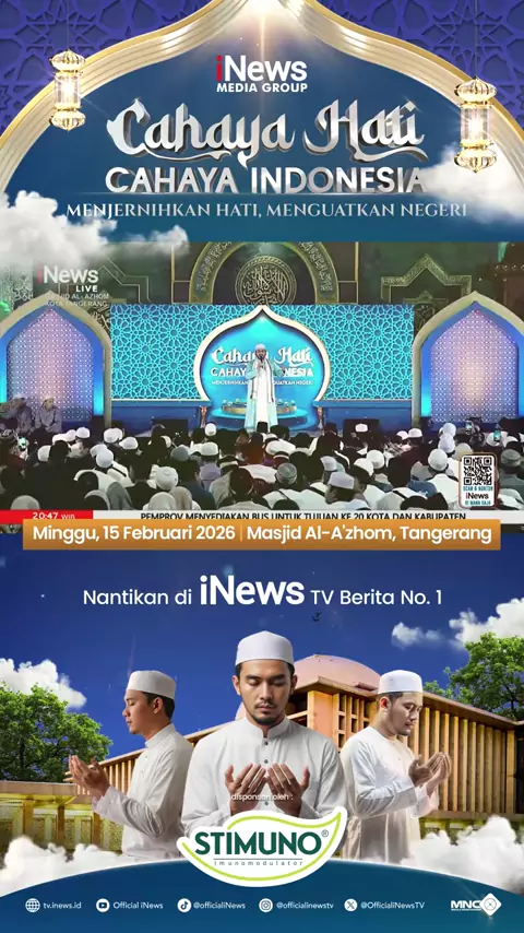 Cahaya Hati Cahaya Indonesia episode spesial Minggu, 15 Februari 2026 hadir langsung dari Masjid Al-Azhom, Tangerang dalam tajuk "Menjernihkan Hati, Menguatkan Negeri". Di tengah derasnya arus informasi, perbedaan pendapat, dan dinamika kehidupan yang tak pernah berhenti, kita sering lupa bahwa perubahan besar selalu dimulai dari dalam diri. Dari hati yang bersih, lahir pikiran yang jernih. Dari pikiran yang jernih, tumbuh tindakan yang bijak. Dan dari tindakan yang bijak, tercipta negeri yang...