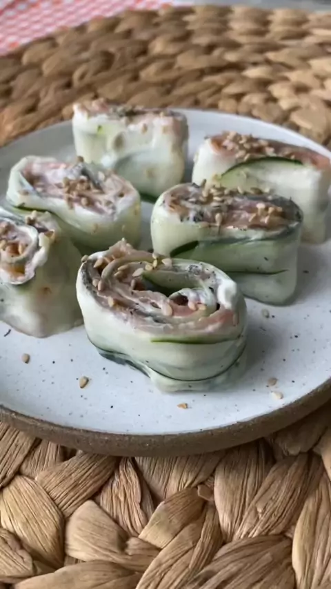 Sushi ๐Ÿฃ Jรก tivemos algumas versรตes aqui e eu tive que trazer mais essa pra vocรช! Eu to obcecada kkkkkk Ingredientes: 10 lรขminas de pepino 2 c.S. cream cheese Salmรฃo defumado ou atum sem รณleo Gergelim โœจ GOSTOU? Me segue para mais Receitas saudรกvel, praticar e delรญcias #sushi #saudavel #receitasaudavel #viral #fit